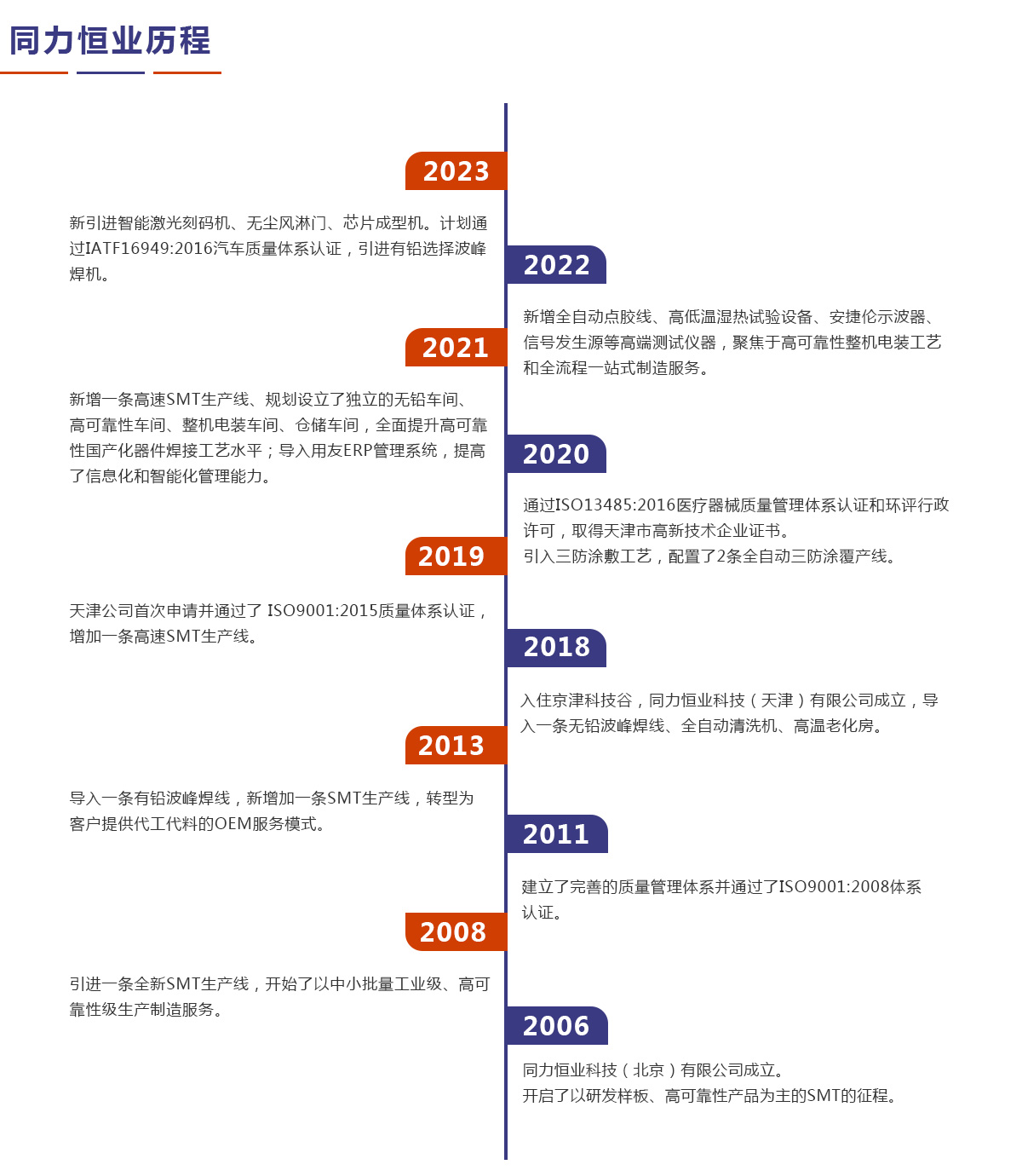 同力恒業(yè)科技成立于2006年,專業(yè)從事電子制造服務(wù)(EMS),專注于為客戶提供產(chǎn)品開(kāi)發(fā)、工藝設(shè)計(jì)、物料配套、精密貼裝、插件焊接、三防涂敷、整機(jī)電裝、測(cè)試?yán)匣约鞍b運(yùn)輸、售后維修等整個(gè)供應(yīng)鏈解決方案。公司定位于高可靠性及中高端產(chǎn)品電子制造服務(wù),在通訊導(dǎo)航、儀器儀表、醫(yī)療設(shè)備、汽車電子等領(lǐng)域具有豐富的一站式制造服務(wù)經(jīng)驗(yàn)。